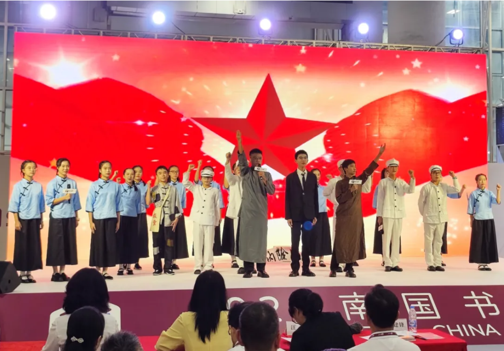 開幕式現(xiàn)場,佛山市華英學(xué)校帶來《覺醒年代》多維劇場,以話劇、朗誦、情景再現(xiàn)等手法,引領(lǐng)觀眾重溯先驅(qū)者的思想之光;該校師生代表宣讀廣東省青少年學(xué)生讀書行動(dòng)倡議書,呼吁全省青少年學(xué)生做“愛讀書”的追光者、“讀好書”的領(lǐng)航者、“善讀書”的踐行者。