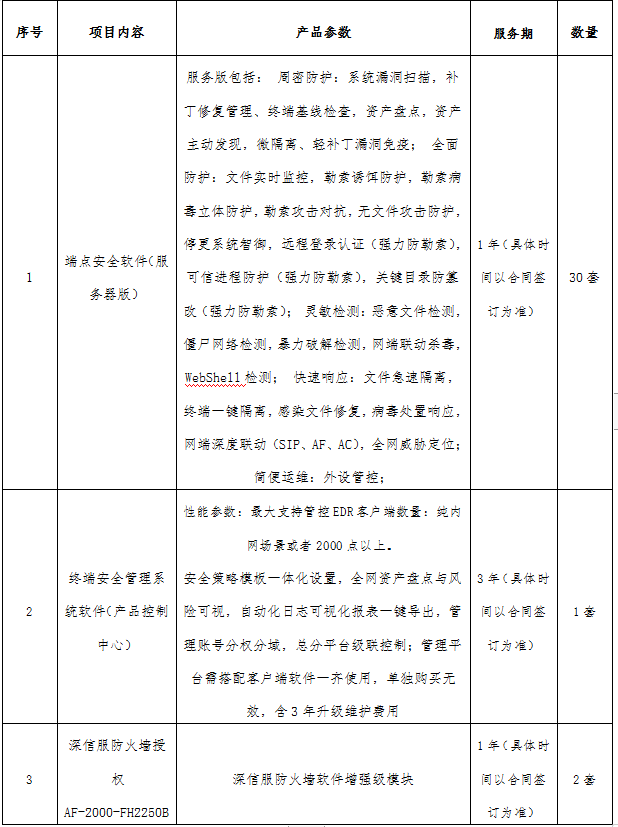 項(xiàng)目名稱(chēng):服務(wù)器端EDR軟件授權(quán)與防火墻軟件增強(qiáng)級(jí)模塊采購(gòu)項(xiàng)目