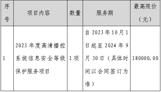 項目名稱:2023年度高清播控系統(tǒng)信息安全等級保護服務項目