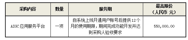 AIGC應(yīng)用服務(wù)平臺項目招標公告