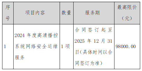 項(xiàng)目名稱(chēng):2024年度高清播控系統(tǒng)網(wǎng)絡(luò)安全運(yùn)維服務(wù)