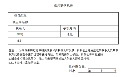 符合資格的供應(yīng)商應(yīng)當(dāng)在2024年10月22日至2024年10月28日(上午09:00至11:30,下午14:30至17:30,北京時(shí)間,法定節(jié)假日除外),將填報(bào)后的公告附件內(nèi)容發(fā)送電子郵件并通知采購(gòu)人,資料需采用WORD和PDF格式制作的電子版各壹份(其中PDF格式文件必須為簽字蓋章后的彩色掃描件)發(fā)至采購(gòu)人郵箱:cjx@fstv.com.cn,郵件名稱(chēng)命名為:項(xiàng)目名稱(chēng)+供應(yīng)商名稱(chēng)。供應(yīng)商所填報(bào)的聯(lián)系方式必須確保始終有效及聯(lián)系暢通,所填報(bào)的電子郵箱必須確保每天工作時(shí)間內(nèi)至少查看1次。