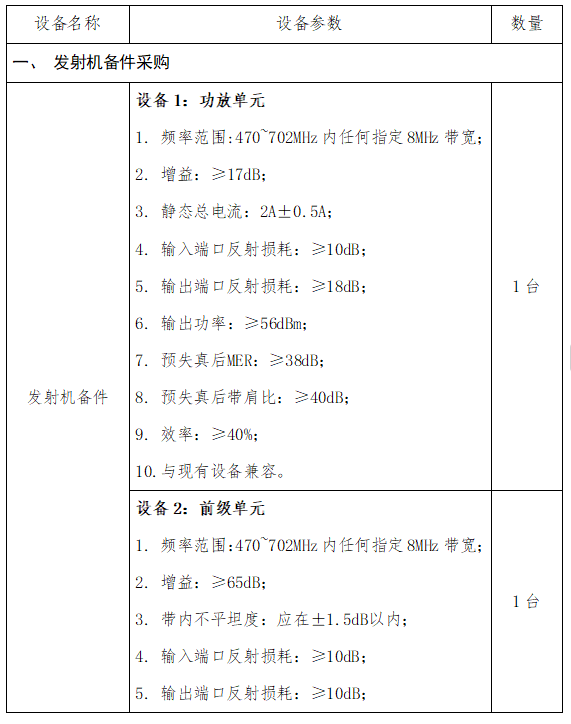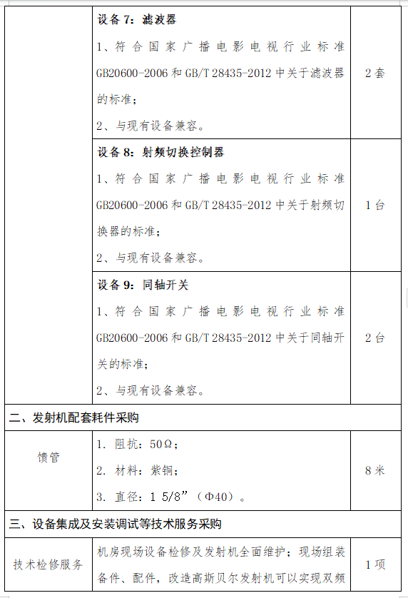 電視發(fā)射機(jī)利舊改造項(xiàng)目采購(gòu)