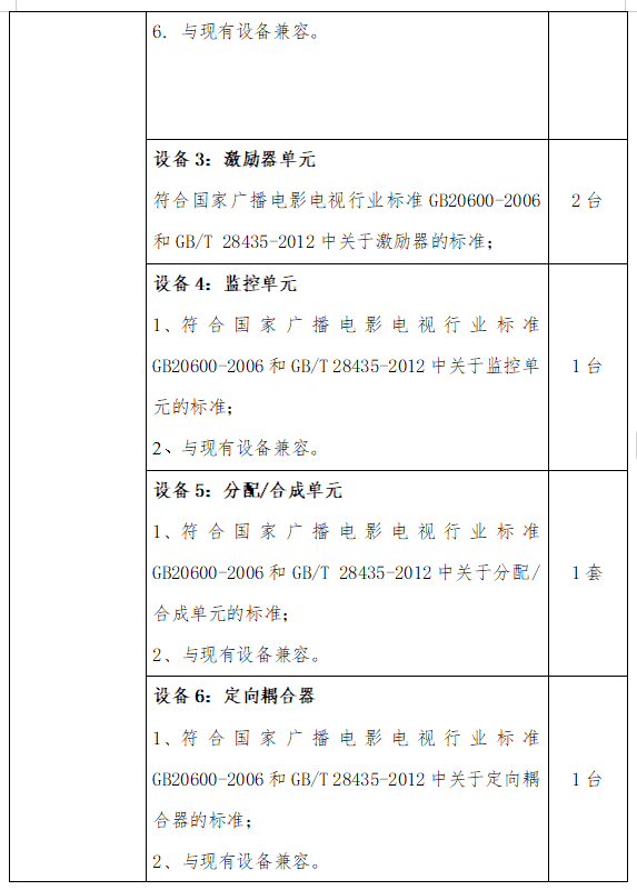 本項(xiàng)目招標(biāo)內(nèi)容為采購(gòu)電視發(fā)射機(jī)房發(fā)射機(jī)備件、配件一批,并把這批配件用于對(duì)高明發(fā)射臺(tái)的一臺(tái)高斯貝爾發(fā)射機(jī)進(jìn)行設(shè)備升級(jí),實(shí)現(xiàn)對(duì)兩臺(tái)主發(fā)射機(jī)(DS-18和DS-36)的冷備份。