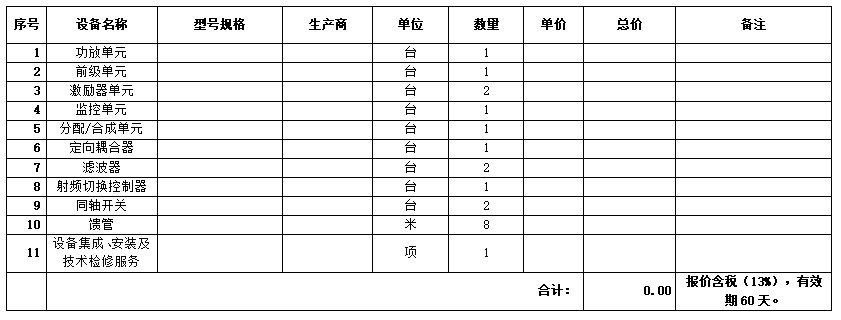 佛山電視發(fā)射機(jī)房數(shù)字電視發(fā)射機(jī)備件配件報(bào)價(jià)單: