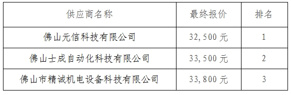 佛山傳媒集團有限責任公司已于2023年 11月 2 日下午16:30分就1號樓7號演播室風柜智能化監(jiān)測控制改造項目召開采購評審會,現就本次采購的成交結果公告如下: